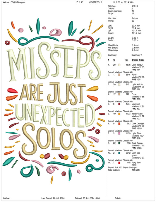 Missteps Are Just Unpected Solos Embroidery Files - 3 Size's