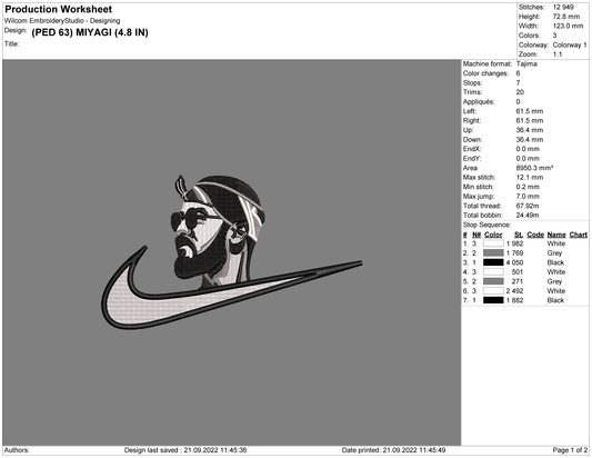 Miyagi Rapper Swoosh Embroidery Design Files - 5 Sizes