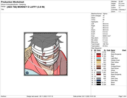 Monkey D Luffy v8 Embroidery Design Files - 4 Size's