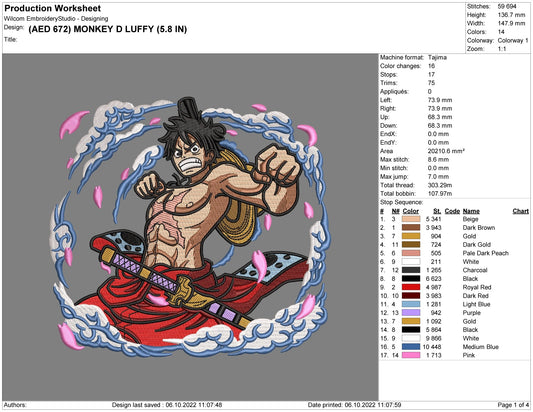 Monkey Luffy Embroidery Design Files - 3 Sizes