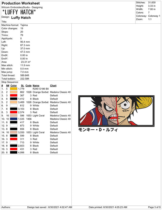 Monkey D Luffy v9 Embroidery Design Files - 3 Size's