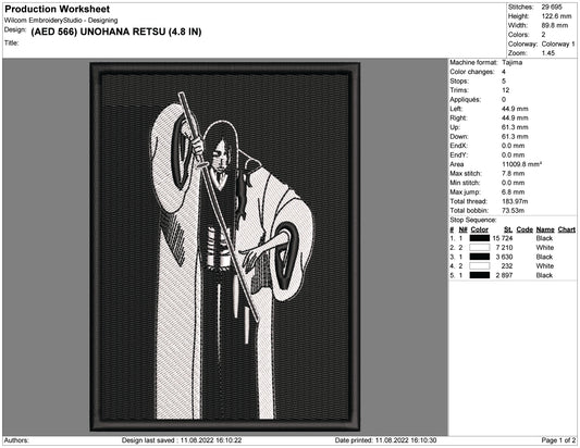 Retsu Unohana Embroidery Design Files - 4 Size's
