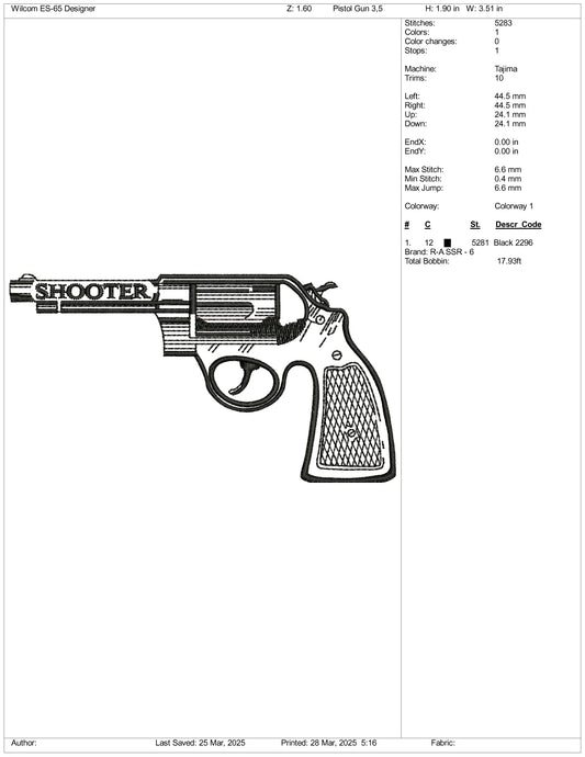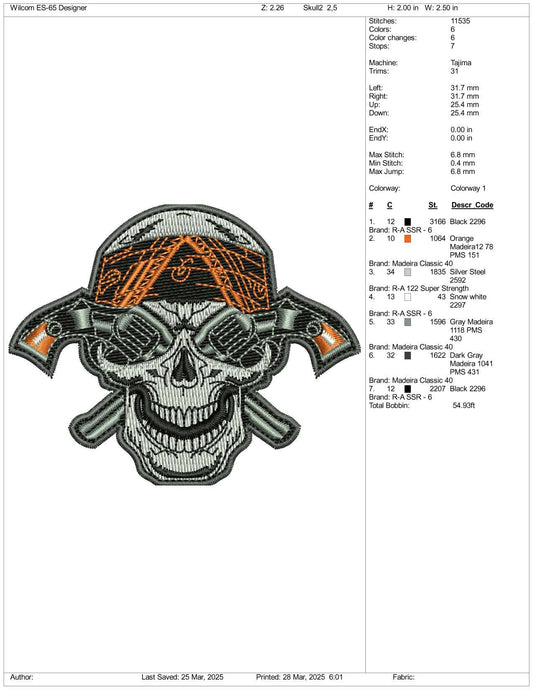 Revolver Gun Skull Embroidery Design Files - 4 Size's