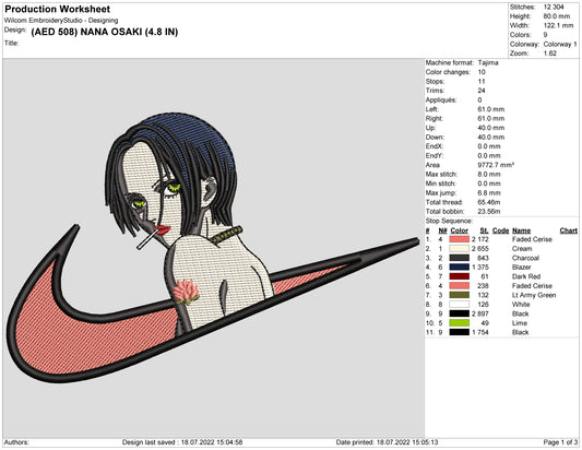 Nana Osaki Swoosh Embroidery Design Files - 3 Sizes