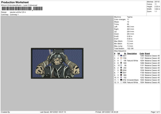 Sasuke Uchiha v2 Embroidery Design Files - 3 Size's