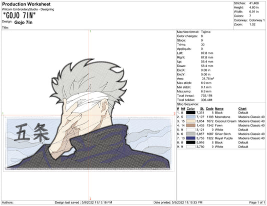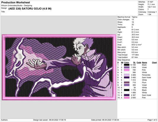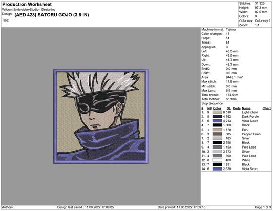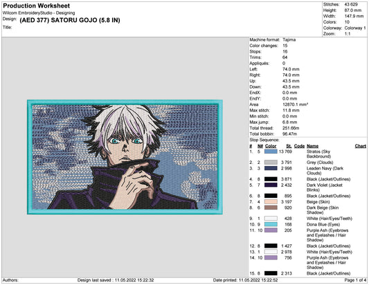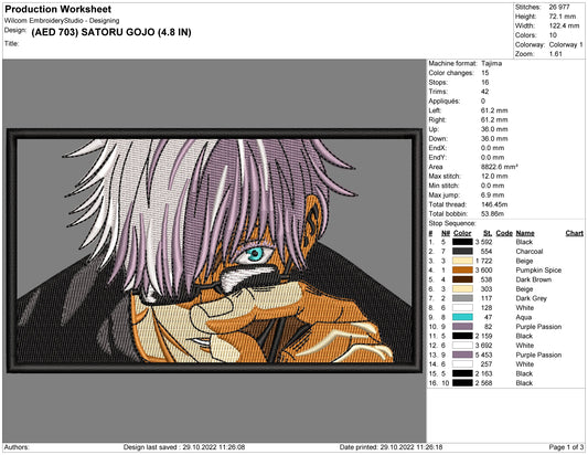 Satoru Gojo v6 Embroidery Design Files - 4 Size's