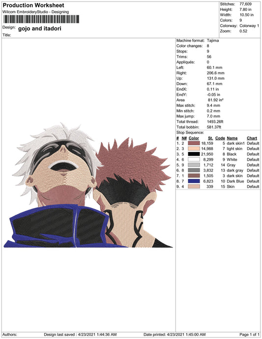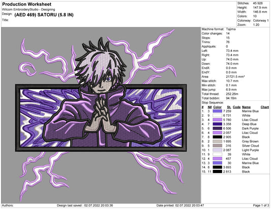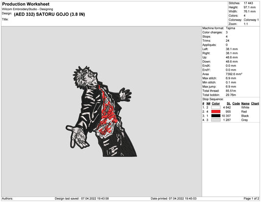 Satoru Gojo v11 Embroidery Design Files - 4 Size's