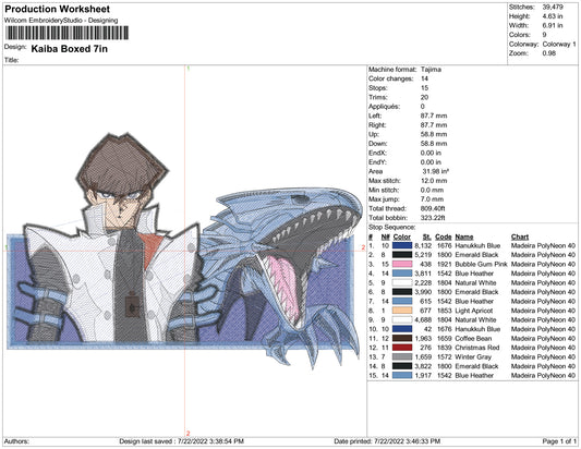 Seto Kaiba Embroidery Design Files - 2 Size's