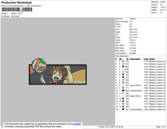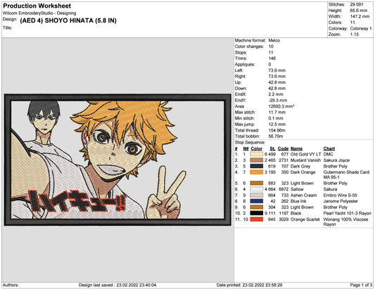 Shoyo Hinata v2 Embroidery Design Files - 4 Size's
