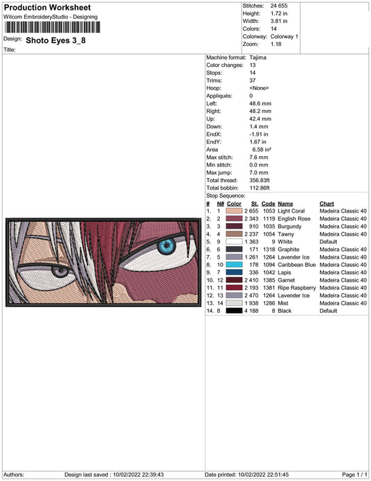 Shoto Todoroki Eyes Embroidery Design Files - 3 Size's