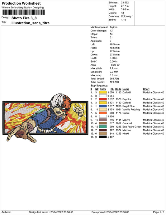 Shoto Todoroki Fire Embroidery Design Files - 3 Size's