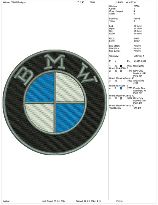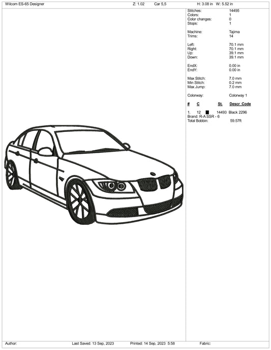BMW Car Line Art Embroidery Design Files - 3 Size's
