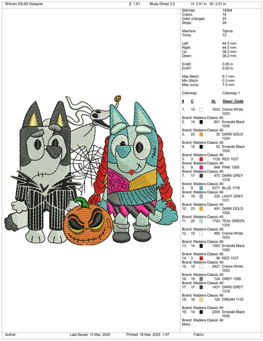 Bluey & Bingo Cosplay Jack & Sally Embroidery Files - 3 Size's
