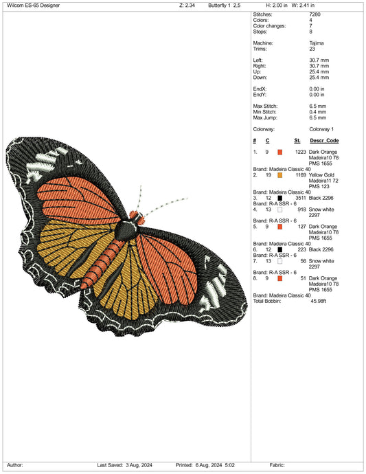 Butterfly Embroidery Design Files - 3 Size's