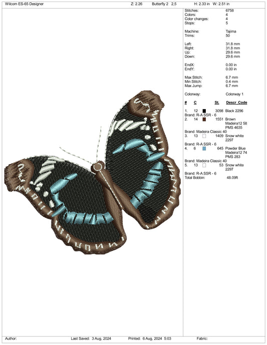 Butterfly Dior Embroidery Design Files - 5 Size's