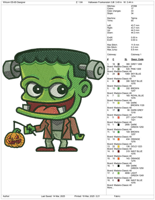 Chibi Frankenstein Embroidery Files - 3 Size's