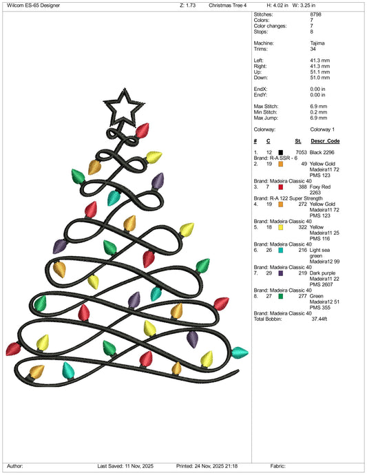 Christmas Light Tree Embroidery Design Files - 5 Size's