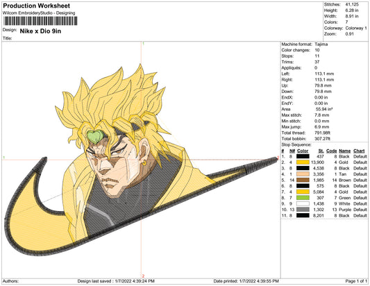 Dio Brando v2 Embroidery Design Files - 4 Size's