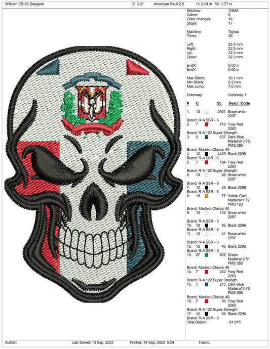 Dominican Republic Skull Flag Embroidery Design Files - 3 Size's