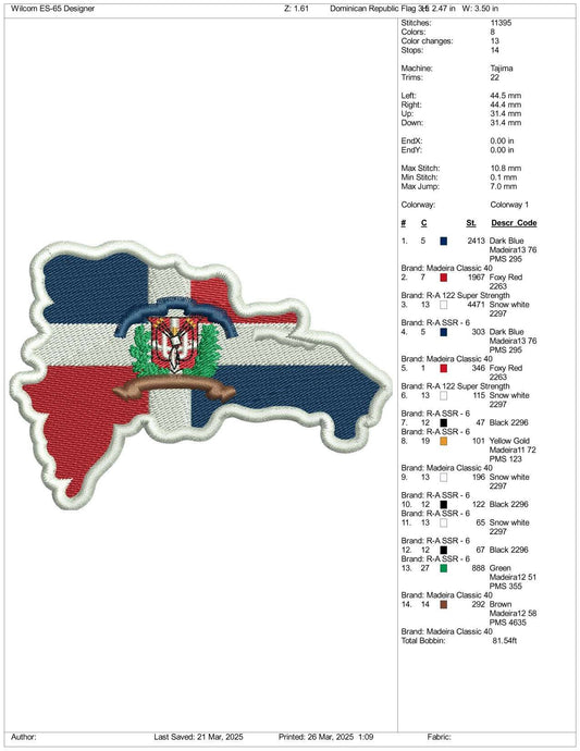 Dominican Republic Flag Embroidery Design Files - 3 Size's