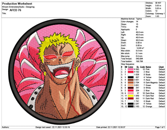 Donquixote Doflamingo v5 Embroidery Design Files - 6 Size's