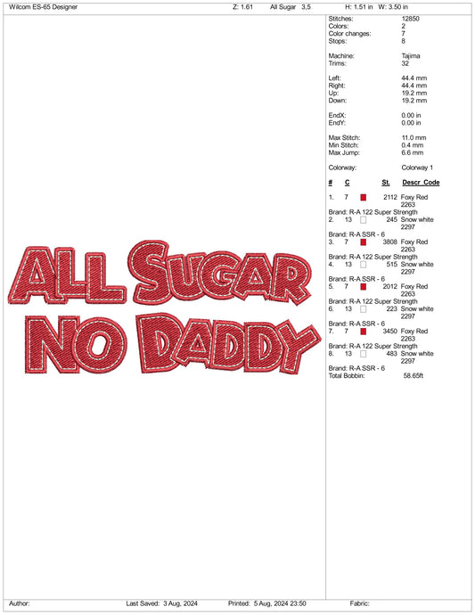 All Sugar No Daddy Embroidery Files - 3 Size's