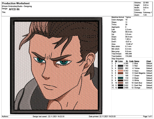 Eren Yeager v11 Embroidery Design Files - 4 Size's