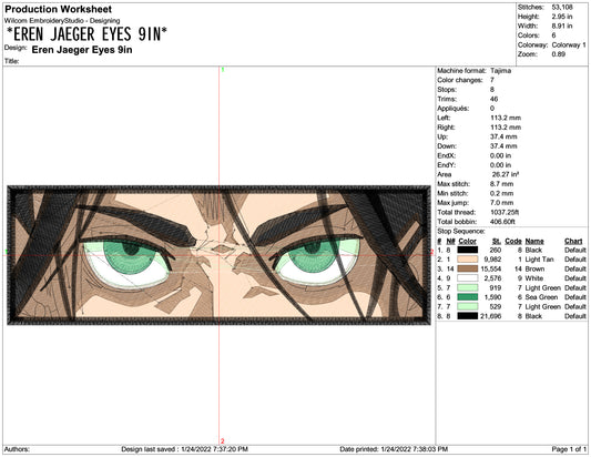 Eren Yeager Eyes Embroidery Design Files - 3 Size's
