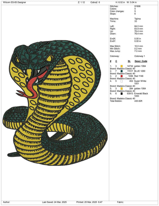 Cobra Snake v2 Embroidery Design Files - 3 Size's