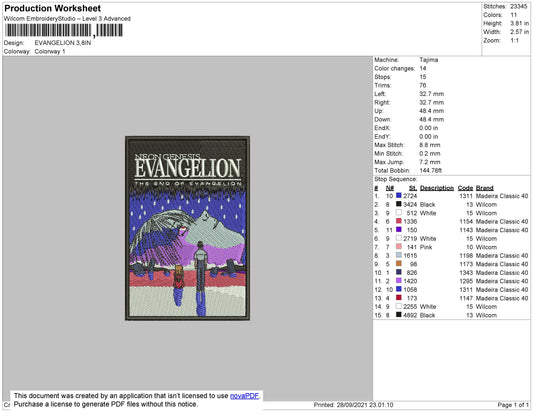 Evangelion Embroidery Design Files - 4 Size's
