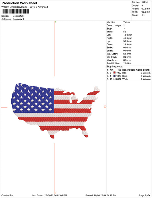 United States of America Map Flag Embroidery Design Files - 9 Size's