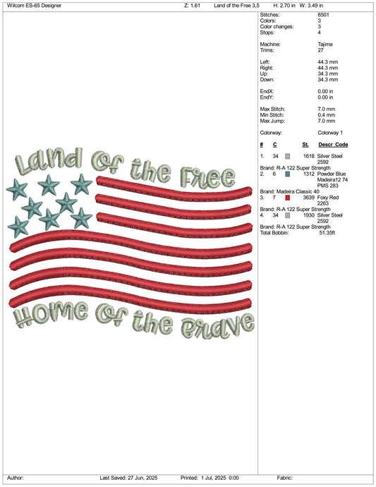 Land of The Free Home of The Brave Embroidery Design Files - 3 Size's