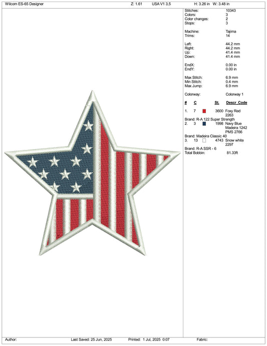 USA Star Flag Embroidery Design Files - 5 Size's