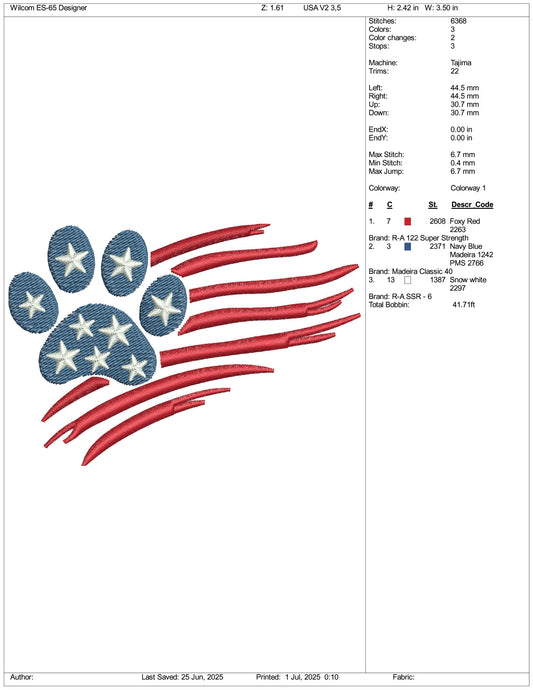 Bear Paw USA Flag Embroidery Design Files - 3 Size's