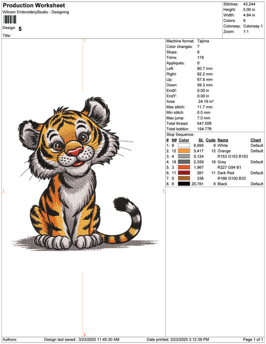 Baby Tiger v2 Embroidery Design Files - 9 Size's