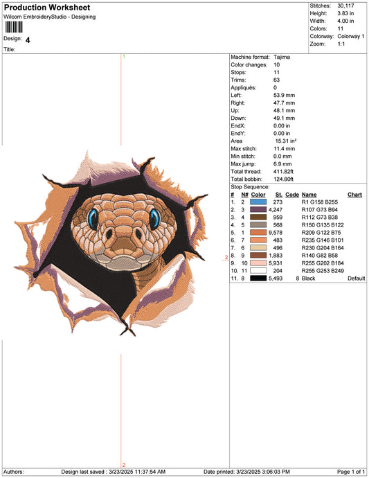 Snake Into Wall Embroidery Design Files - 9 Size's