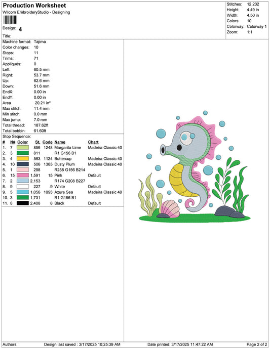Sweet Seahorse Embroidery Design Files - 9 Size's