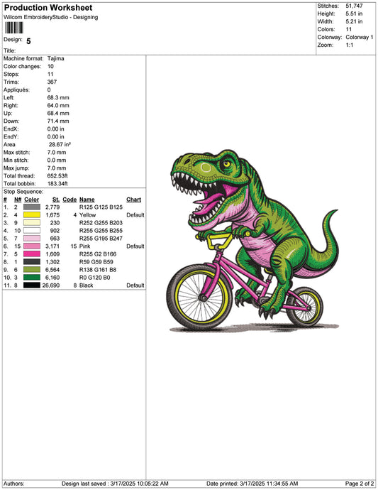 T Rex on Wheels Embroidery Design Files - 7 Size's