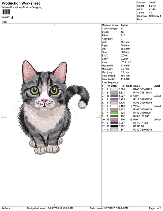 Tabby Cat Embroidery Design Files - 9 Size's