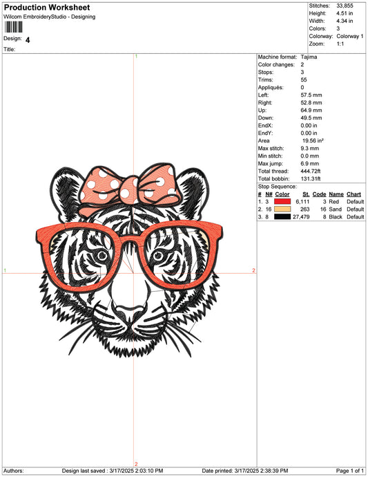 Tiger Sunglasses Embroidery Design Files - 9 Size's