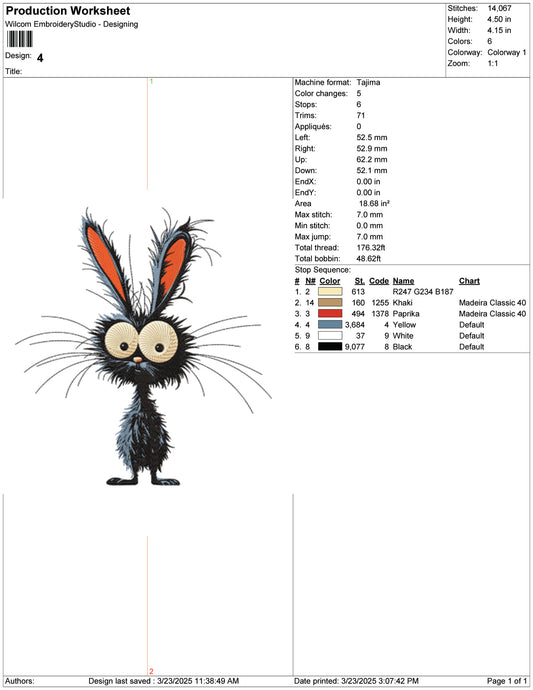 Zany Bunny Embroidery Design Files - 9 Size's