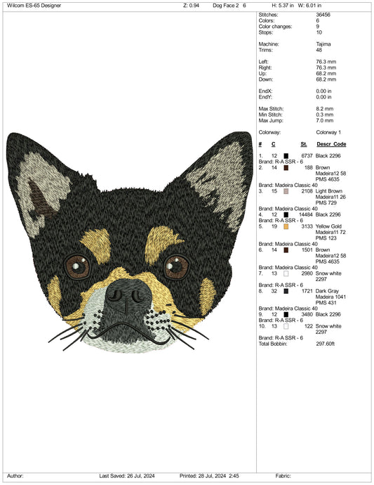 Dog Face v2 Embroidery Design Files - 3 Size's
