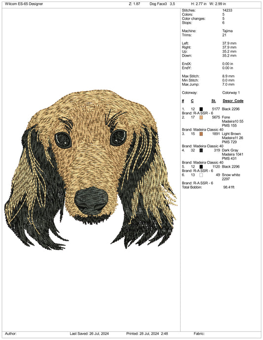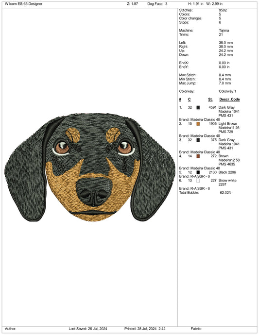 Dog Face v3 Embroidery Design Files - 3 Size's