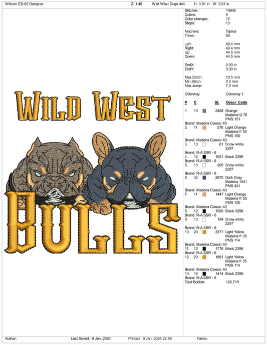Wild West Bulls Embroidery Design Files - 3 Size's