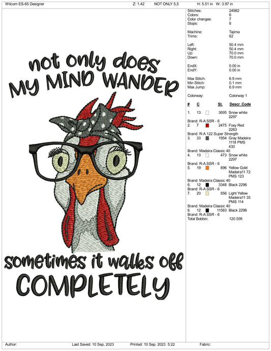 Not Only Does My Mind Wander Embroidery Design Files - 3 Size's