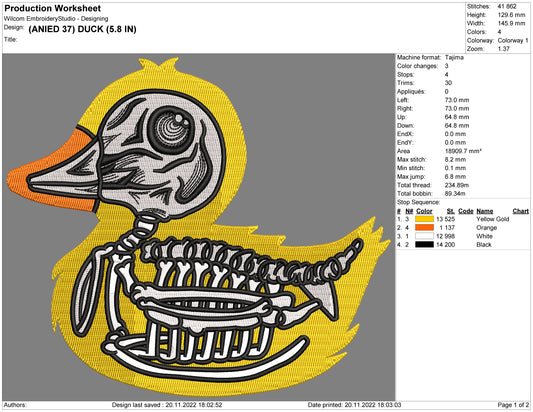 Skeleton Duck Embroidery Design Files - 5 Size's
