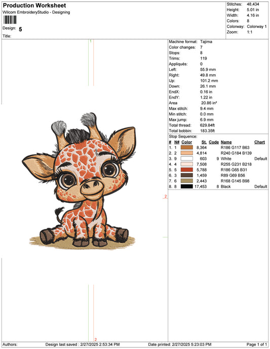 Baby Giraffe Embroidery Design Files - 9 Size's