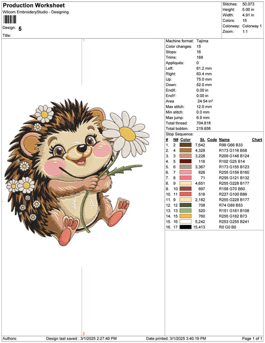 Baby Hedgehog Embroidery Design Files - 9 Size's