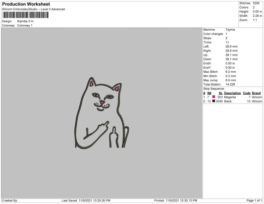 Middle Finger Cat Embroidery Design Files - 4 Size's
