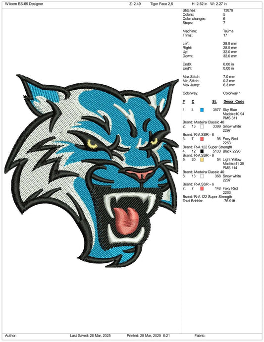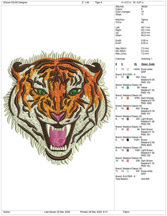 Tiger Face v4 Embroidery Design Files - 3 Size's